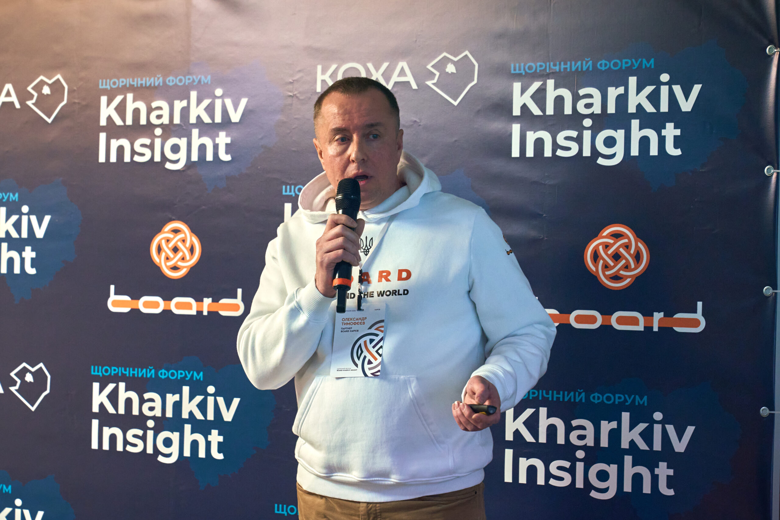 Офіційне відкриття, хвилина мовчання, Гімн України. Вітальне слово організатора Олександра Тимофєєва — партнера BOARD Харків, директора компаній «ХарківХімпром» та Apex Plant.